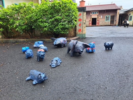 屏東萬巒有著全台灣最完整的客家聚落,這裡保留下來幾近傳統的客家味,旁有北大武山,溼地貫穿整個聚落,溪水清澈無比,走在五溝水聚落,沿途客家三合院建築,猶如回到早期先民開墾台灣的客家村落一般。 在過往傳統的農業時代,養豬是十分普遍的現象,豬隻與豬圈也因此成為農村生活獨特的風貌,如今隨著生活型態的改變,這些獨特的農村文化也逐漸消失了,但對社區居民而言仍記憶猶新且意義非凡,因此我們希望能與社區居民透過紙漿共同創作出記憶中的豬隻泥塑,並放置在僅存的豬圈中重現傳統農村文化,成為泗溝獨特的環境藝術創作。