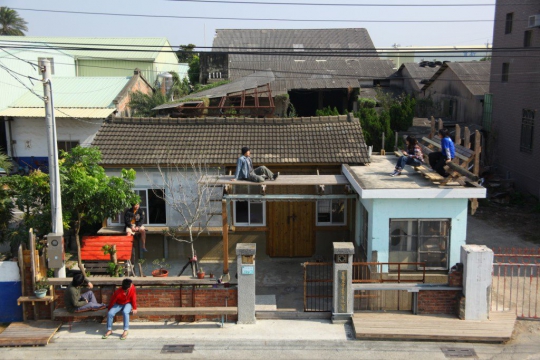老屋坐落於德興里鄰近,這幢有深厚底蘊的建築是荒廢了三十多年的木竹工廠,在2009至2011年完成老屋新立的空間改造;帶著對手作的堅持與持續連繫左鄰右舍的熱忱,屋主主動協同社區,擬於老屋週邊的閒置空地規劃社區藝術工坊,推廣以廢棄材料回春為主軸的手作傢俱課程。一來是讓曾經習於動手的居民,與藝術設計迸發出火花,完成可以符合生活需求的街道傢俱;再者,立基迄今三年、深植於鄰里間的經營,試圖為老去的社區帶來持續性的新活動與新議題,甚至是另一種的微型而獨創的產業機會。