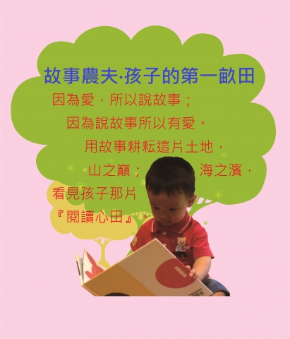 此計畫以臺中市山區、海線之社區、部落、校園為主,以多元說故事模式推動「偏鄉閱讀運動」;計畫創意點為開墾偏鄉閱讀的「一畝田」,由孩子以創意閱讀方式,共同耕耘一畝田,這一畝田是「實體閒置空間」加上「文創概念」所產生的田地,在這一畝田中可以完成(1)親子說故事劇場(2)故事農夫培育計畫(3)一畝田耕耘(4)創造在地繪本。並輔以網站網絡的串連,使所有的一畝田得以相互分享,此計畫將各偏鄉的閱讀一畝田完美結合,使閱讀教育深耕於臺中市山區及海線的每個孩子心中。今日你我是故事農夫,明日這些孩子也將傳承。