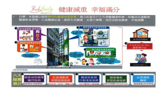 現今人生活,日常三餐多以外食為主,三高族人數亦有逐年成長的趨勢,為使台北市民享有健康、安全及快樂的高品質生活,本計畫擬提供便利的健康減重服務,建立社區居民之生理數據資料庫,培養居民運動與健康飲食習慣,打造健康大樓社區,達到全民健康,為社區居民創造健康、幸福的生活品質。