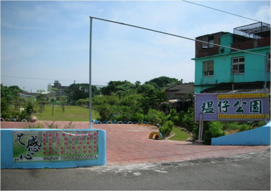 社區內唯一的漁塭,暫且叫鴛鴦池吧,位於環繞真耶穌教會側後方,還有一棵百年老榕樹相依傍,具詩情畫意,令人無限遐思〈回憶往事,沉思〉,真是一片寧靜的世外園區。如果我們有經費,要將四周植栽、綠美化,池中清理,並種植荷花點點,架設原木棧道,環繞四周,鴛鴦兩池以白色拱橋相連,其間建設一個紅色六角亭,其內擺上一石桌、椅,往來居民,無不小憩片刻。走過鴛鴦池,來到榕樹下,榕樹四周鋪設原木木板,設置靠背長木椅,三三兩兩,坐下來,喝咖啡聊是非,這不是人間一大樂事嗎!嗨!恐怕這不是一百萬可以完成,做做白日美夢,也有益