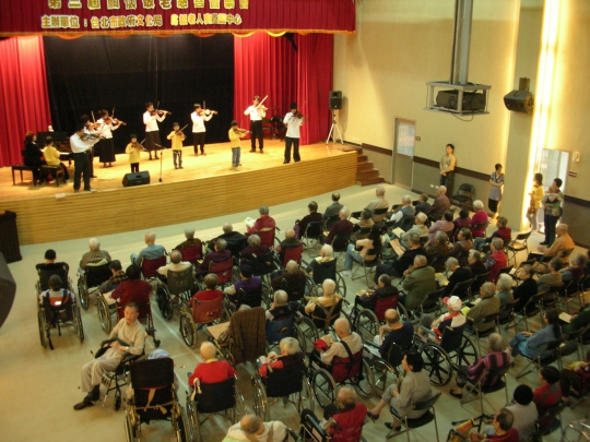 1.結合多樣藝文團體,推廣社區藝術與人文音樂活動。 2.提供長者多元之社區藝術音樂休閒活動。 3.推廣社區音樂藝術生活,提昇民眾藝術文化分享。 4.關懷社區老人,闡揚敬老倫理美德。 5.發展社區音樂藝術與文化,提昇社區音樂演奏水平與普及。 6.提倡祖孫互動溫馨情,世代和樂相處,奠定家族倫理。 除了健全老人的健康照護體系之外,為了能更加完整老人福利服務與措施,需兼顧心理及永續發展之層面,回饋社會、發揚社區藝術與文化,關懷弱勢,提升老人身心健康與精神層次,更致力於城鄉藝文差距的連結。