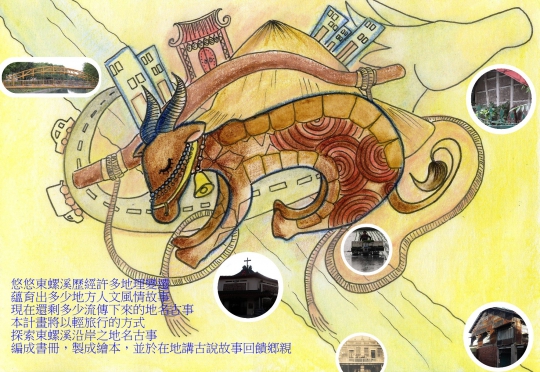 背起包包,帶著家人一起到他鄉講講古,說說故事一直是心中的希望,並且把看到的奇遇美景記錄起來,分享給有相同希望的朋友們。自從返鄉回北斗老鎮居住後,發現東螺溪之美不只於幽幽溪流,更繫情於悠悠古歷史,本計畫將以輕旅行的方式,探訪走尋東螺溪旁的地方名稱故事,並把收集的資料編成書籍,製成繪本和東螺溪巡禮手冊,並以講古說故事的方式於在地的地方文化館、圖書館、社區發展協會、廟宇、教堂、百年老樹下…回饋在地鄉親,希冀更多出外的遊子看見自己故鄉之美,也能讓在地的小朋友多認識自己的家鄉