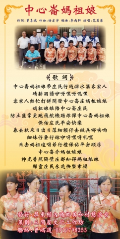 1.由申請人作詞,取得三位作曲家同意譜曲譜共15首,經編曲錄製CD。 2.在屏東內埔傳統客家三合院建築民居前,召募10位素人歌手,以50年的生命厚度唱我們的歌。 3.每首歌都有生命故事,用簡潔的文學筆法,寫出我們的歌生命故事,並編成歌舞劇。 4.巡迴偏鄉演唱歌舞劇,帶動社區民眾懷舊的歷史美感,憧憬社區美好的未來。