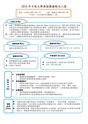 提案單位中原大學柬十二班海外服務學習團隊