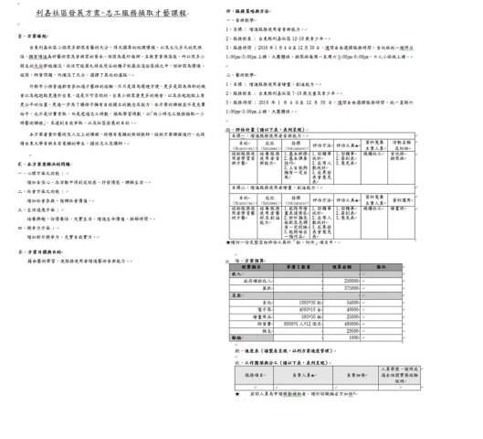提案名稱利嘉社區發展方案-志工服務換取才藝課程