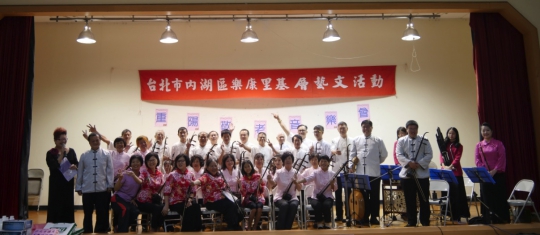 內湖區樂康里、紫陽里是臺北市的藝文發展潛力新興社區,有著濃厚的人情風景與文化氣息,但欠缺實際拓展的機會,實屬可惜。本團團長黃春興戶籍就在內湖,因此本計畫是在內湖紫陽里及樂康里,打造優良文藝社區,深耕社區傳統文化之營造;本計畫內容主要包含傳統音樂研習之基層文化播種。樂康里、紫陽里與草山樂坊長時間的演出合作下,具有深厚的情誼,本團期能以點到線,以至到面,來推展的村落文化藝術,與這些在地社區與團隊合作中,共同為社區藝文進行妥善營造,更期待成為全面性的社區營造,形成大村落營造的最大成效。