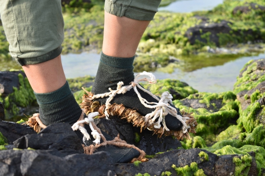 花宅聚落,位於澎湖縣望安鄉,為台灣第一個國家級的重要聚落。地理環境限制,使得島上的物質經濟取得不便,當地人運用生活經驗的累積,創造許多生存工具,來解決人在海邊採食的不便。其中,草鞋,是早期花宅人穿去到潮間帶撿螺仔、挽海菜的工作鞋,防止行走時受傷打滑之用。它是與海共生的必需品,更是乘載文化的智慧結晶。由於塑膠時代興起,反之,打草鞋的生活工藝逐漸被遺忘,甚至不曾出現在我們的生活視野。透過此計畫,運用花宅聚落的閒置空屋,作為復甦草鞋工藝培力與實踐里海精神的工作室,引動潮間帶與人的依存關係,深耕連結。