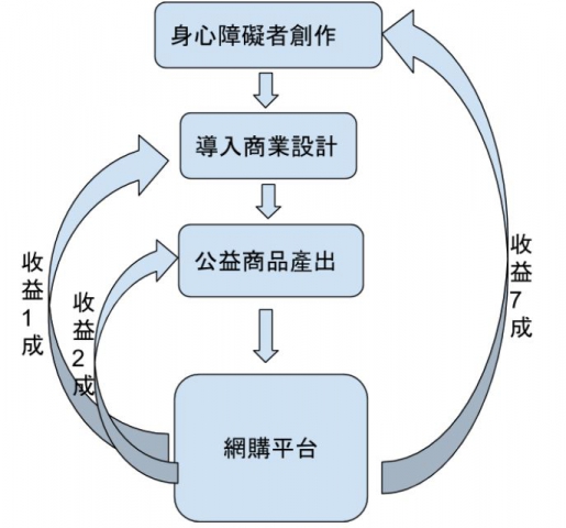 曾在身心障礙者社福機構服務8年,有感於社福機構常因經費不足而落入悲情行銷,因此希望透過建構網購平台,並結合商業設計,讓身心障礙者發揮能力,藉由平台將個人作品推廣銷售,協助其達到自我實現並為社會貢獻生產力。預期短期效益在使身心障礙者的自我成就反映在實質收入,協助設計生產者不再無償服務以提升各界參與服務意願。長期效益在減輕障礙者家庭負擔及社會成本,大眾透過消費而非捐贈方式參與社會回饋。本平台亦透過商品部分收益回注維護平台使其永續運作。
