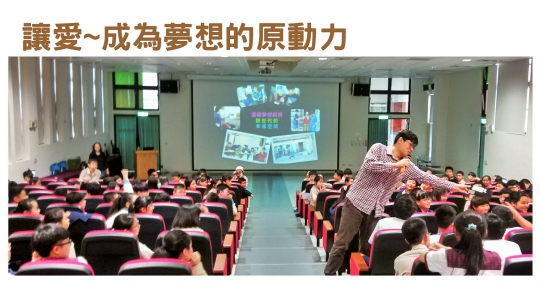 我是~高興 國三畢業完成「單車環島」夢想,途中看到許多「愛台灣的真實故事」! 因此興起另一個夢想,在家鄉三義號召青少年創立「溫馨廚房」團隊,服務困苦家庭與獨居長輩,過程中累績不少動人的故事,獲得「15屆保德信青少年志工親善大使獎」因此受許多學校單位邀請分享我的服務和築夢經驗。 一次次分享過程裡發現~故事竟然可以複製故事!生命能夠影響生命!夢想可以帶動夢想!更讓愛~成為夢想的原動力! 五年來超過一百場分享,成功影響協助苗栗及中彰投成立8個社區志工隊 讓更多學子看見自身價值與社會責任並投入社區服務。