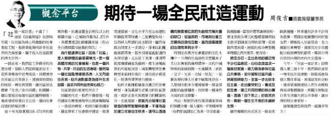 這是《信義房屋》自2004年起,以社區為核心所推動的社會重組工程,很榮幸能偕同許多社造界的先進前輩,攜手投入社造啟蒙的浩大行列。