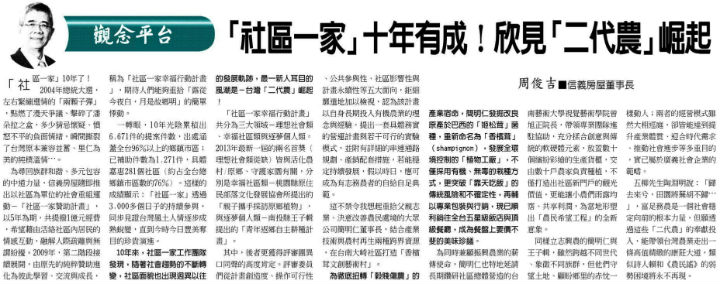 《工商時報》專欄:「社區一家」十年有成!欣見「二代農」崛起
