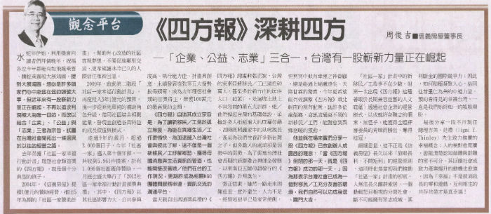 《工商時報》專欄:《四方報》深耕四方 ─「企業、公益、志業」三合一,台灣有一股嶄新力量正在崛起