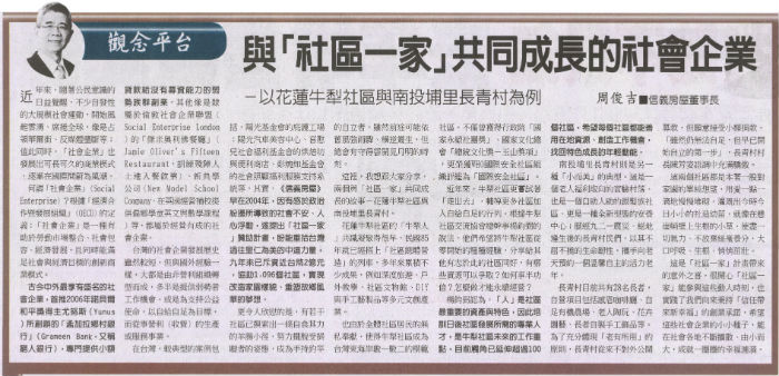 《工商時報》專欄:與「社區一家」共同成長的社會企業