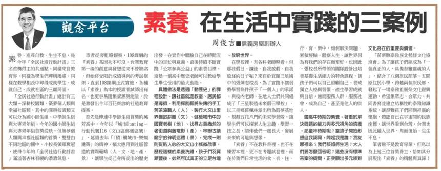 《工商時報》「素養」在生活中實踐的三案例 (2020/11/09)