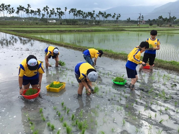 (西富國小師生參與有機農田插秧,實踐蝙蝠保育理念。來源:花蓮西富國小粉絲專頁)