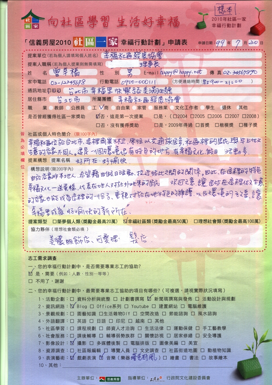 還沒有來提案的,趕快動起你的手,把申請表寫一寫寄至工作小組,就能參加初選階段的審查囉!