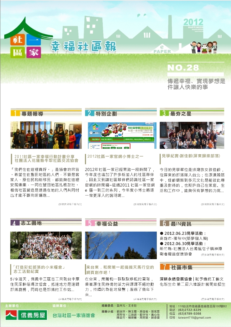 社區一家幸福電子報:第二十八期---傳遞幸福、實現夢想是件讓人快樂的事