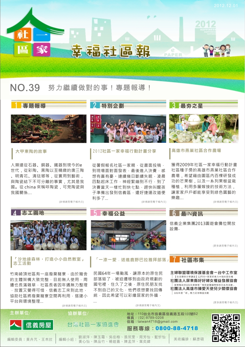 社區一家幸福電子報:第三十九期---努力繼續做對的事!