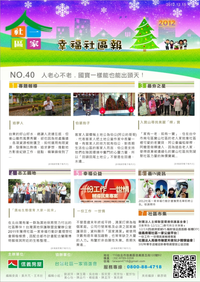 社區一家幸福電子報:第四十期---人老心不老,國寶一樣能也能出頭天!