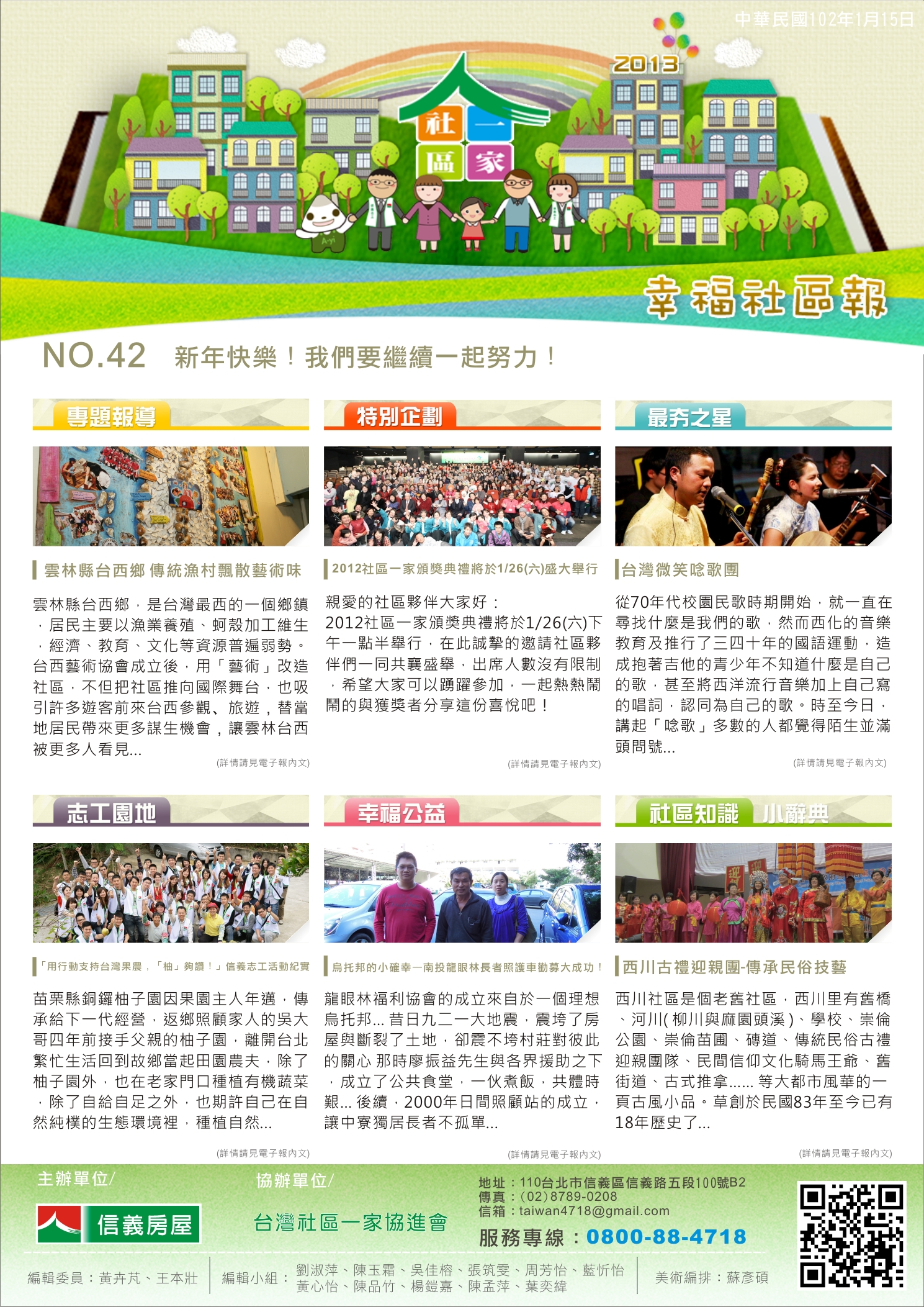 社區一家幸福電子報:第四十二期---新年快樂!我們要繼續一起努力!