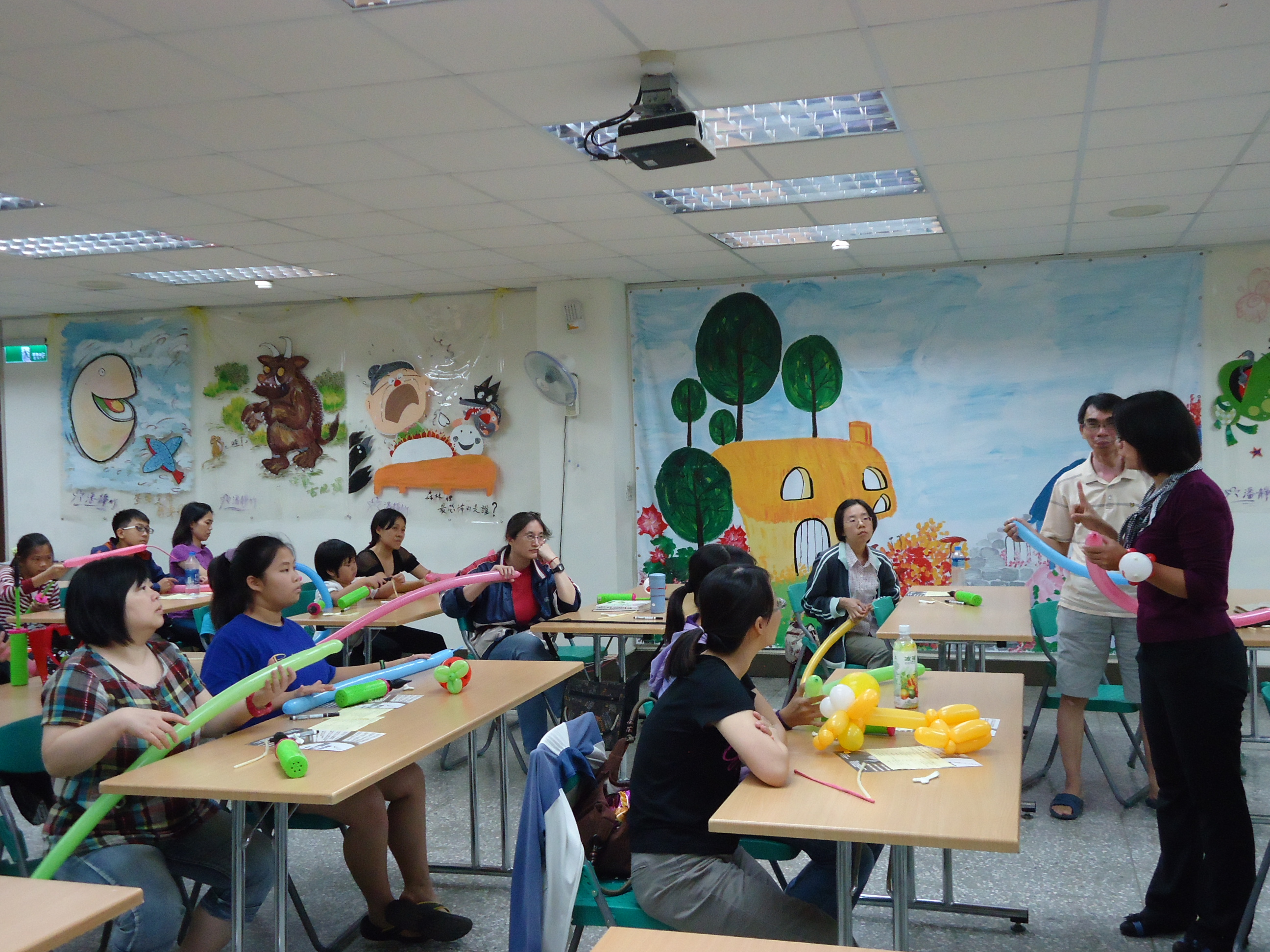 系列講座的第一場,邀請到台南市社區大學親子玩藝氣球課程的黃小琪老師和大家分享;老師述說著自己在非傳統家庭下成長對心理造成的傷痕,一直到國中時遇到了生命中最重要的導師,讓她重新找回自己也更努力的去轉變成一個更好的人;老師說到,雖然一路走來跌跌撞撞,換過許多份工作,但她始終記得有人曾與她說過,若是資質不如人就需要更努力!這也是小琪老師對每項工作都是百分百的認真及付出;在這樣的激勵下,老師考取了多張證照,在工作上得到了成就感!小琪老師的故事感動現場每一位聽眾,活動最後,老師教導大家摺造型氣球,一同佈置屬於自己的生命風景!
