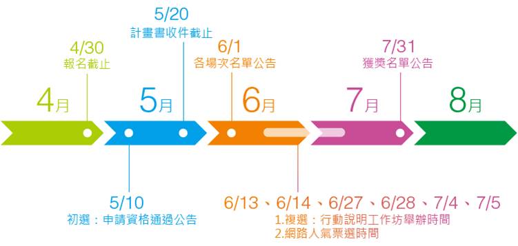 工作小組再次提醒大家,通過初選的夥伴們,請記得於5/20(三)前繳交計畫書及相關資料,詳細資訊請點閱官網公告「2015計畫書繳交通知」。