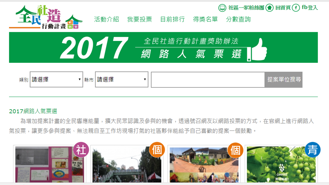 2017全民社造行動計畫-----網路人氣票選,開始投票囉!