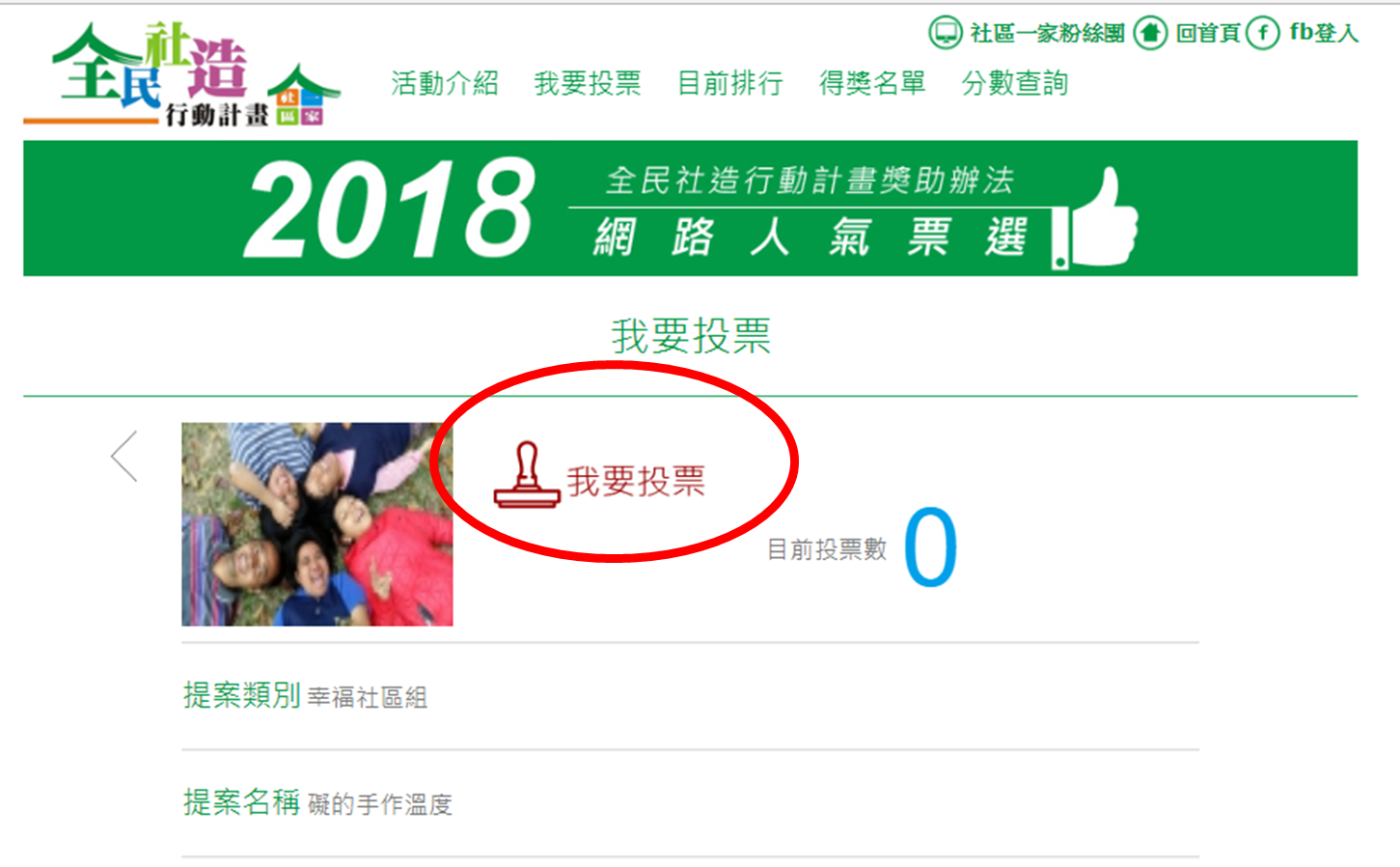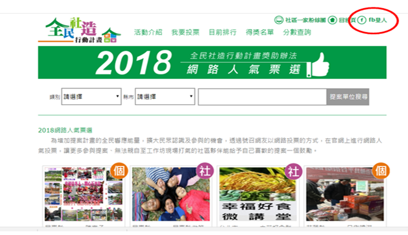 2018全民社造行動計畫-----網路人氣票選(占總成績10%),