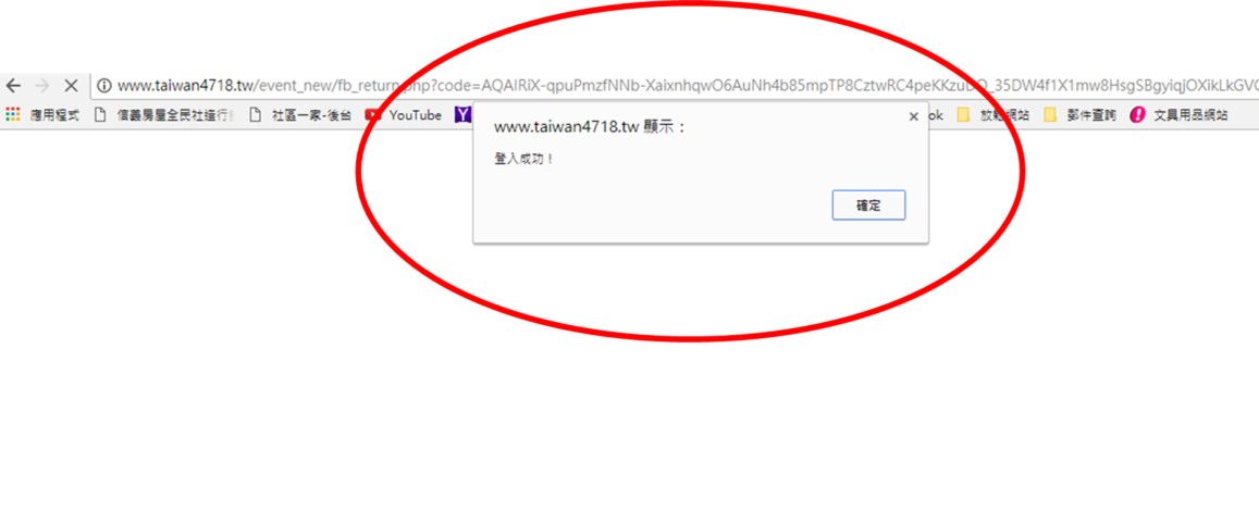 3.登入FB後,畫面會顯示「登入成功」