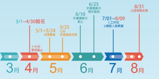工作小組提醒大家,通過初選的提案單位,請於2020/6/10(一)前繳交計畫書及相關資料(以郵戳為憑,亦可使用宅配系統寄送,請提案單位務必保留寄送計畫書時的單據作為憑證),詳細資訊請點閱官網公告「2020計畫書繳交通知」。