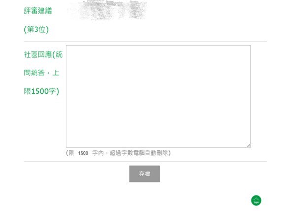 【步驟三: 回應評審提問(只能文字回覆,並限1500字),記得「存檔」】