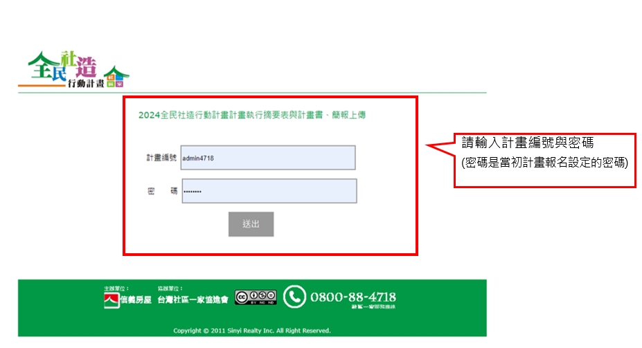 帳號為計畫編號,密碼是當初計畫報名設定的密碼