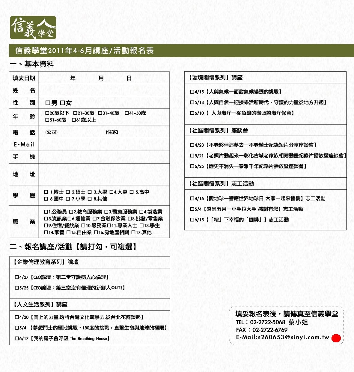 意者請傳真或MAIL至信義學堂蔡小姐收