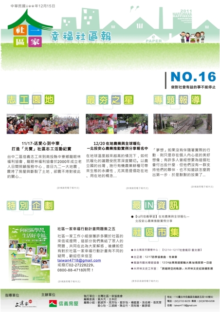 社區一家幸福電子報:第十六期---做對社會有益的事不能停止